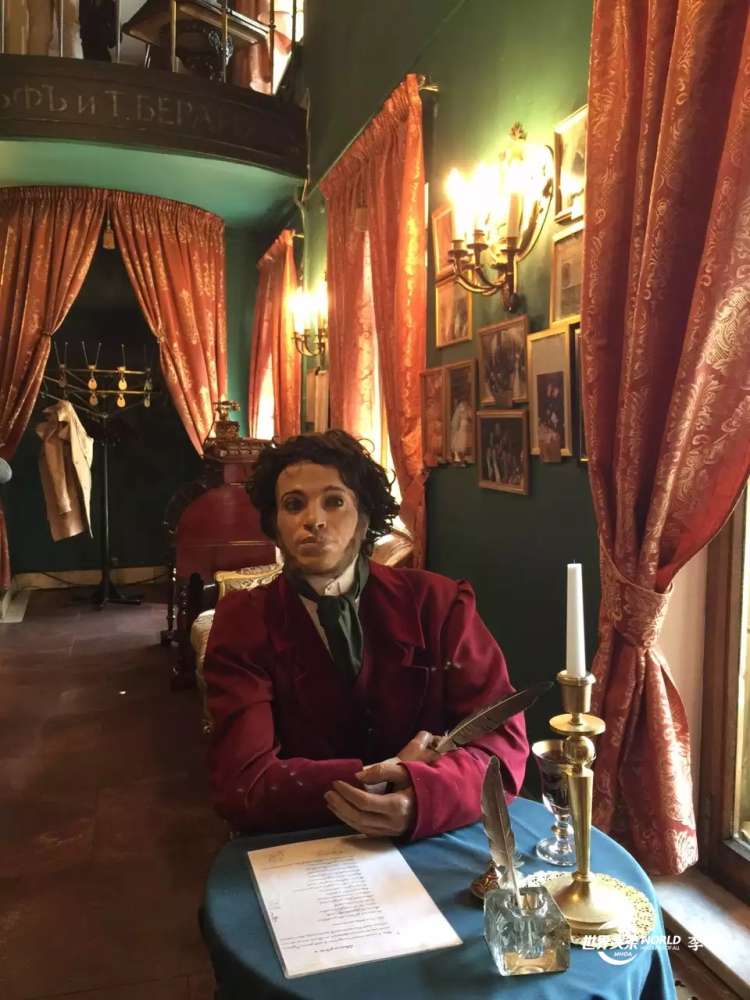 进入咖啡馆,迎接你的是“普希金”,“他”端坐在一楼靠窗的位置,仿佛在构思他新的诗句,深思不语,任凭游客们纷纷过来品头论足,合影留念。与这尊普希金蜡像合个影、发个朋友圈,也几乎成了到此一游的中国游客的规定性动作。
