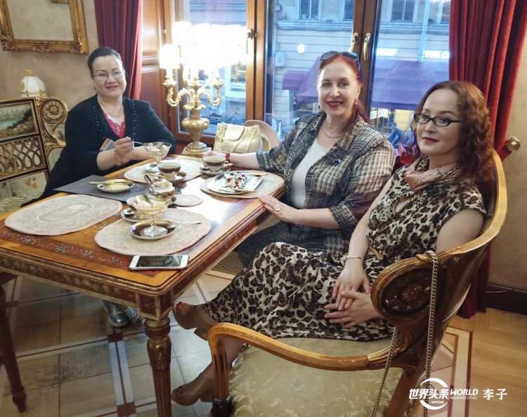 笔者最近一次来这个咖啡馆是2019年夏天,与两位来自莫斯科的朋友相约在这里,一位就是相识二十余年的老朋友——“俄罗斯之声”电台的著名华语资深主持人、高级编辑邹传华女士(下图左),另一位俄罗斯舞蹈家朋友(下图中)。