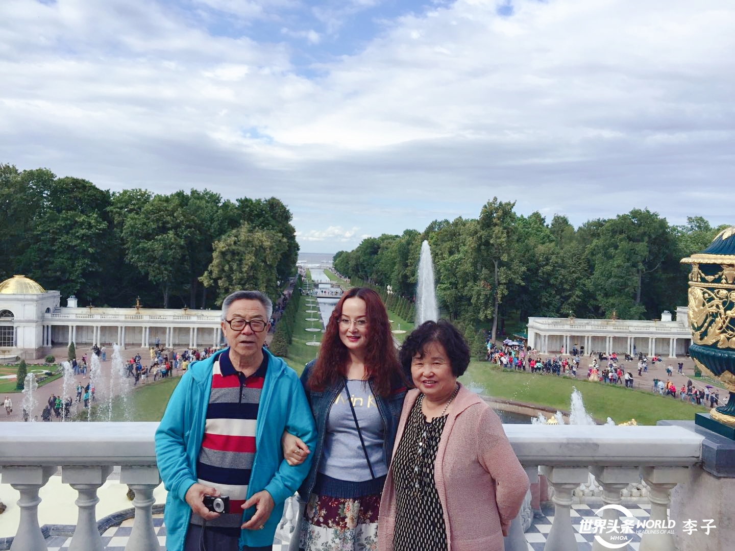 2015年,与父母同游彼得霍夫,这是皇家宫殿门前的运河。