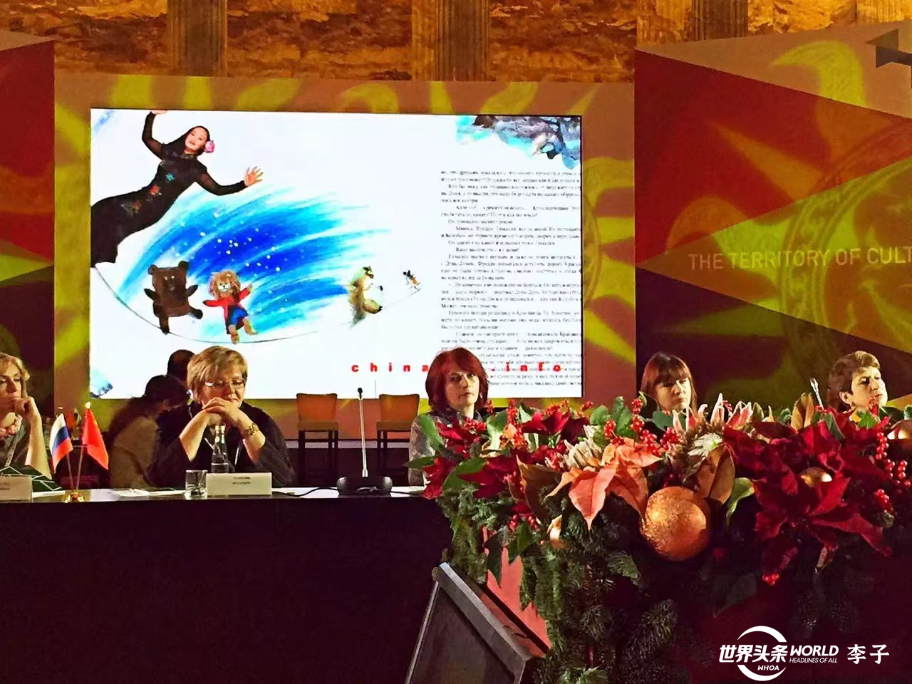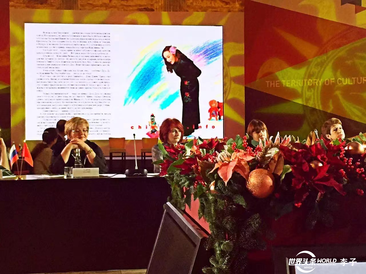 在圣彼得堡第四届国际文化论坛上,笔者现场推介俄文童话绘本《太子敦敦》,得到来自不同国家和地区学者的广泛关注。(摄于2015年俄罗斯国家博物馆)