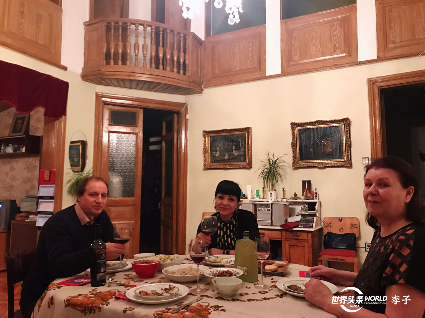 与友人一起在尼娜(右一)家中(弗•谢洛夫在圣彼得堡的故居)做客。(2019年元旦)