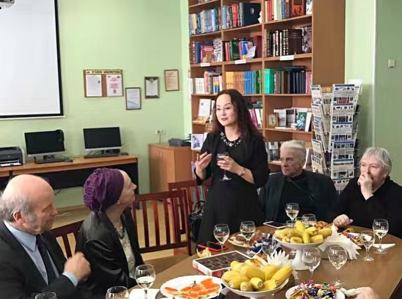 在纪念叶列梅耶夫诞辰九十五周年画展上,笔者和叶老夫人斯维特兰娜一起回忆与叶老相处的美好时光。是的,叶老的乐观主义精神一直影响和感染着他周边的人,纪念他,当然要用他喜欢的“歌声与微笑”喽。