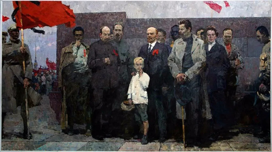 (油画作品《在英雄纪念碑前》,胜利纪念日里,人们在英雄纪念碑前缅怀先烈)