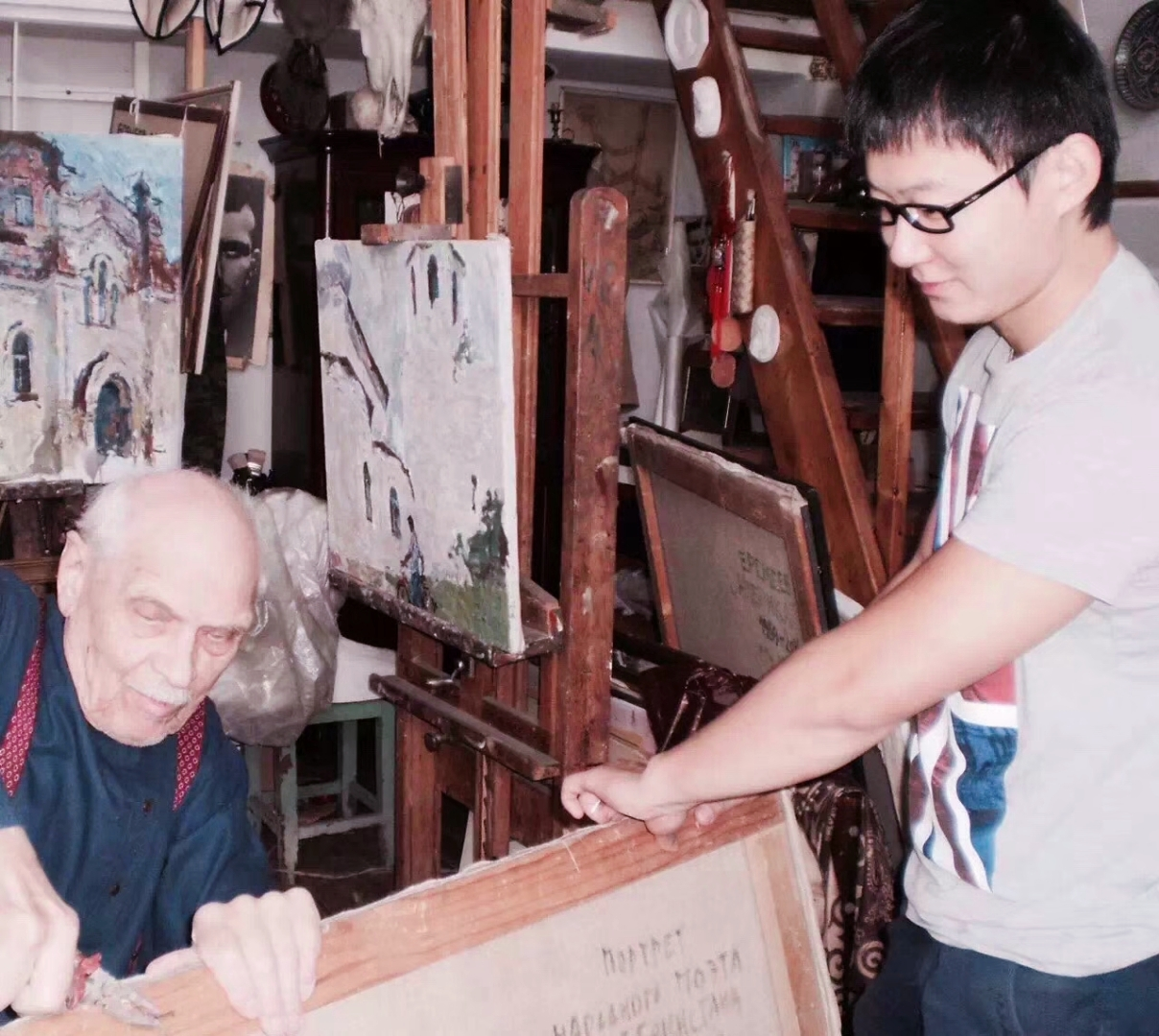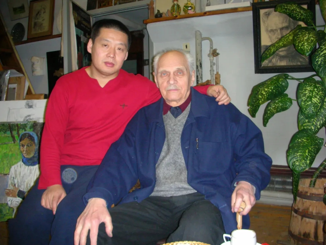郑光旭和恩师叶列梅耶夫在工作室(2005年)