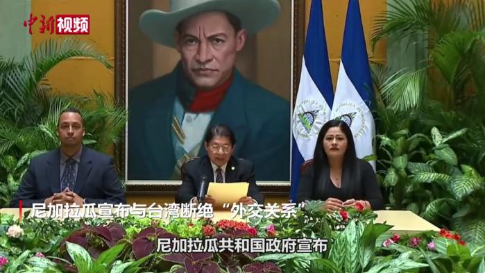 尼加拉瓜政府9日宣布与台湾“断交”。(图片来源:中新视频截图)