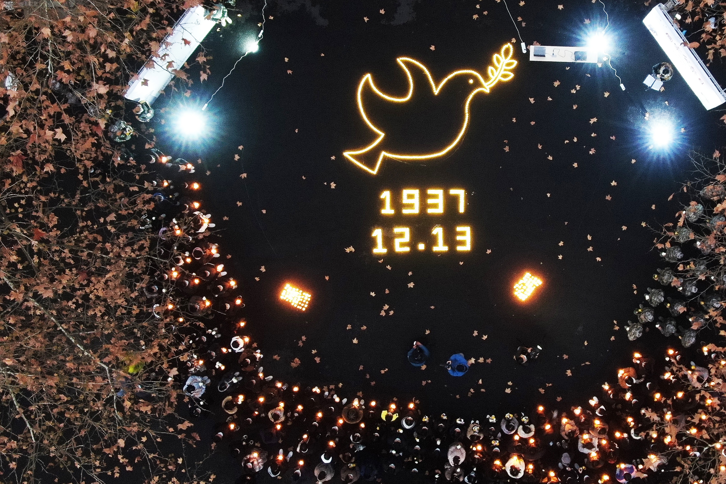资料图为东南大学师生点亮烛光,缅怀遇难同胞,铭记历史,祈愿和平。(图片来源:中新社)