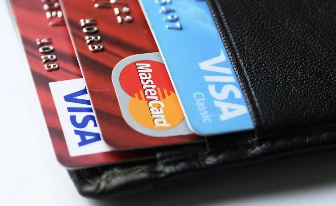 图为Visa和Mastercard银行卡。(图片来源:俄新社)