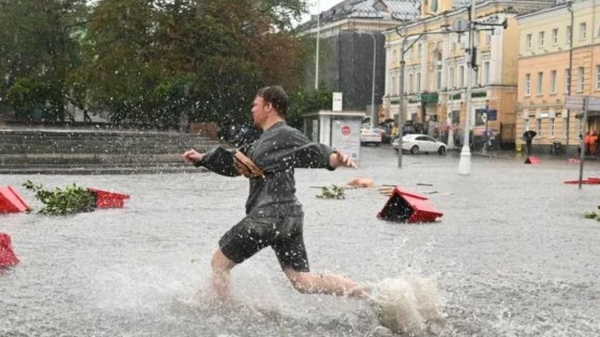 根据社交网站上的视频显示,包括莫斯科中心阿尔巴特大街在内的二十多条大街被大雨淹没,几十棵树被大风吹断,汽车被毁。部分地铁站封闭,市中心打车3分钟收费550卢布,需要排队10分钟。