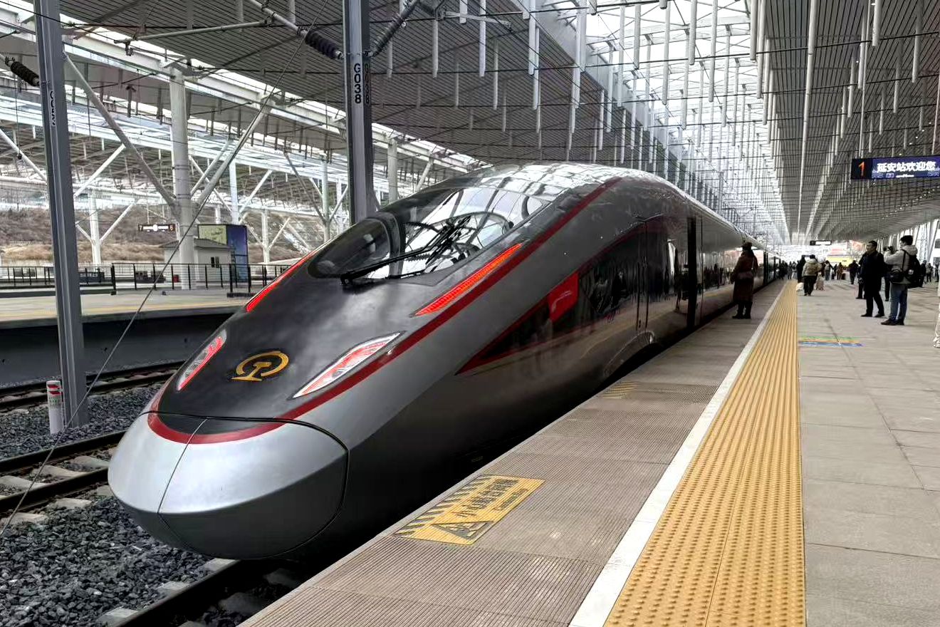 12月26日,西延高铁正式开通,延安至西安的首趟高铁准备发车。(图片来源:中新社)