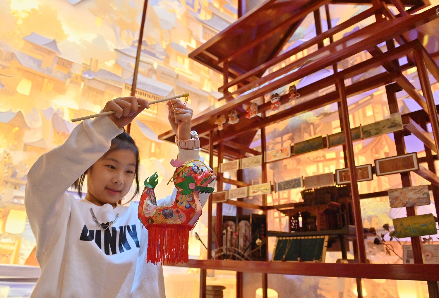 2月18日,在长春市一家商场内,小朋友在挑选“国风”灯笼。近来,随着国潮文化的兴起,越来越多的商家将中国传统文化元素与现代设计理念相结合,打造出一系列“国风”潮玩小物件,受到民众的喜爱。(图片来源:中新社)