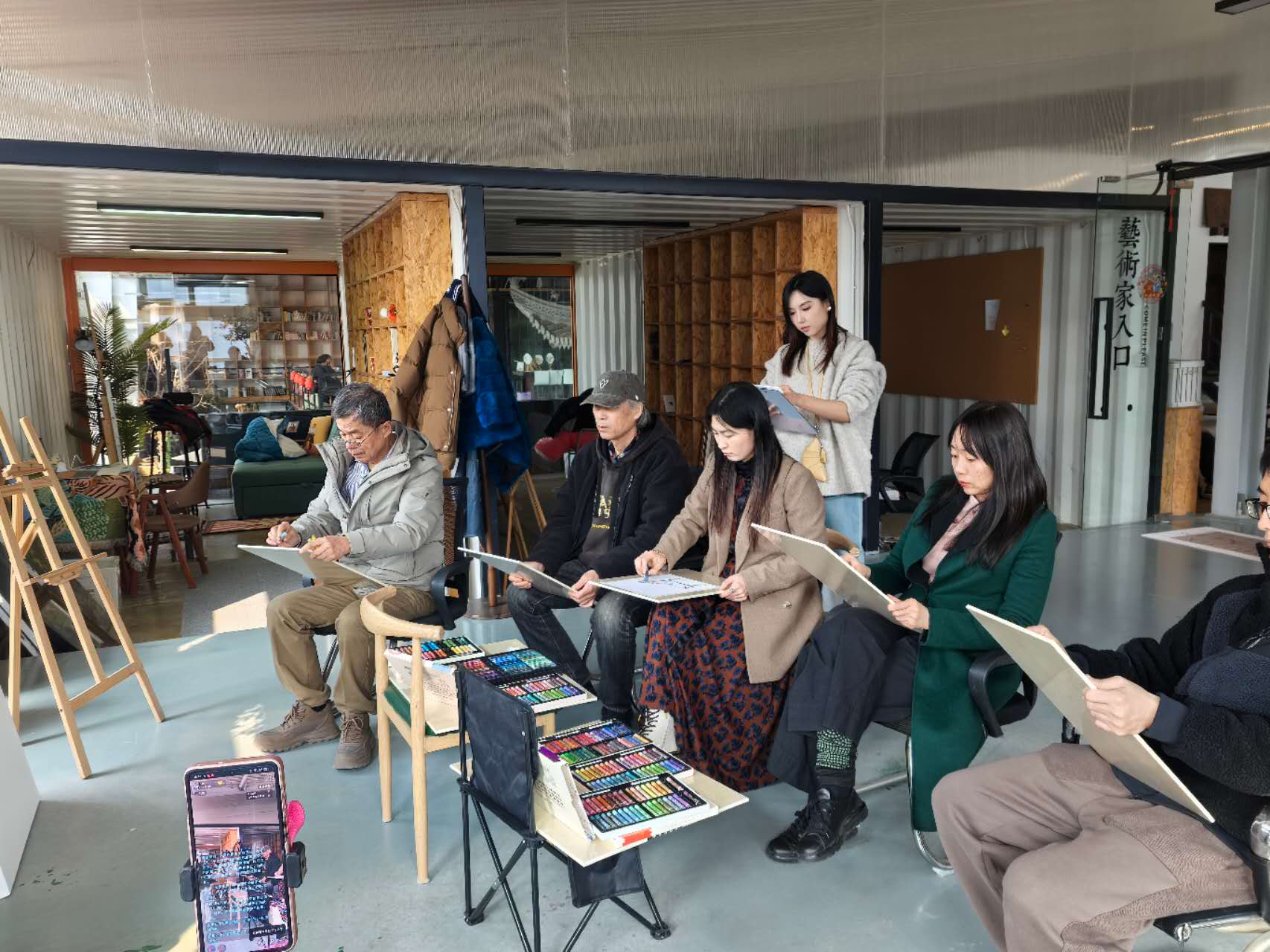 开幕式当日,突发"艺术内卷"名场面,在场的艺术家们现场即兴创作静物小品,引发观众们的好奇和围观。当场便诞生出十件“油画棒”作品,出现"展中展"的独特艺术外溢效果。