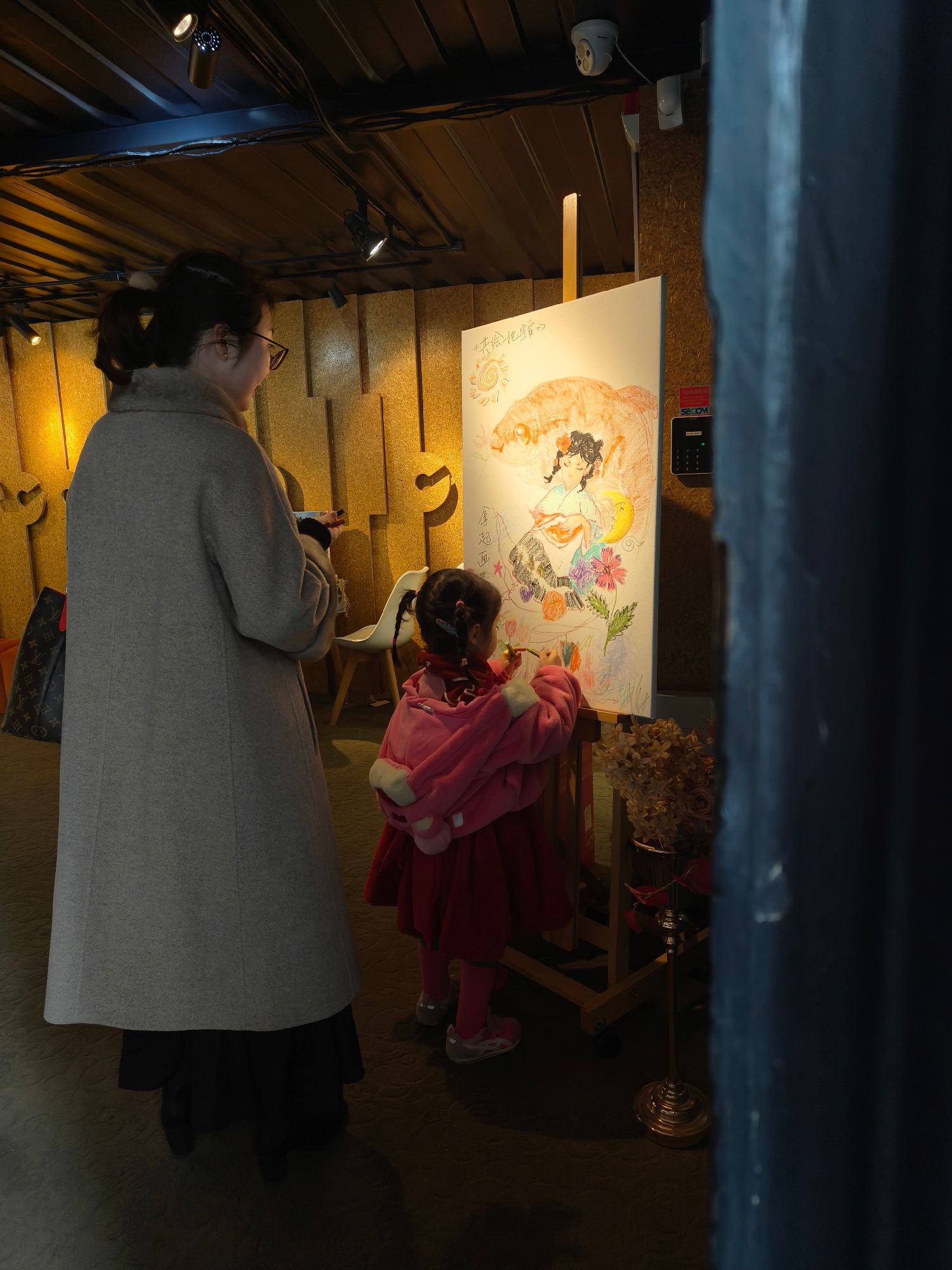 在油画展开幕式上,主办方还组织了一系列的活动内容。四大突破传统观展的创新板块,令观众耳目一新——“口红宣言墙”收集百支口红创作的女性独白;“共绘她星球”观展游客共绘一幅艺术作品,该活动成为家长与孩子们的热门打卡地;“艺术后花园"特别活动,现场线上直播观看量突破4万次。