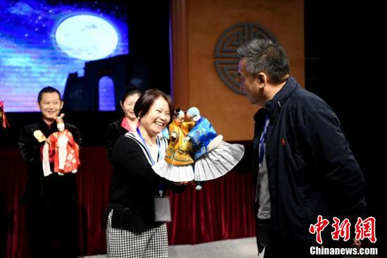 海外华文媒体代表体验木偶戏。