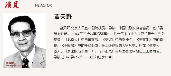 蓝天野(图片来源:北京人民艺术剧院网站)