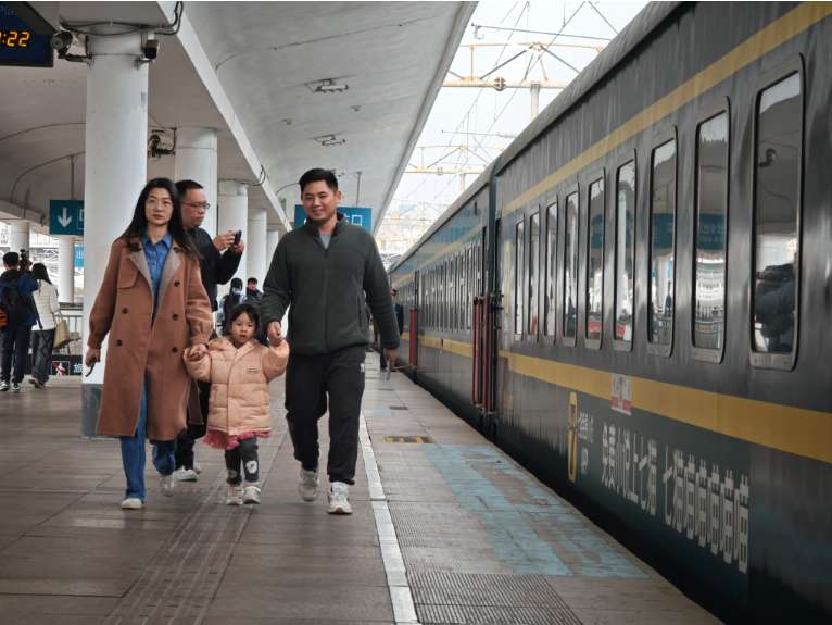 1月25日,从广州开往徐州的K303次列车,成为广州站始发的最后一班普速列车。(图片来源:中新社)
