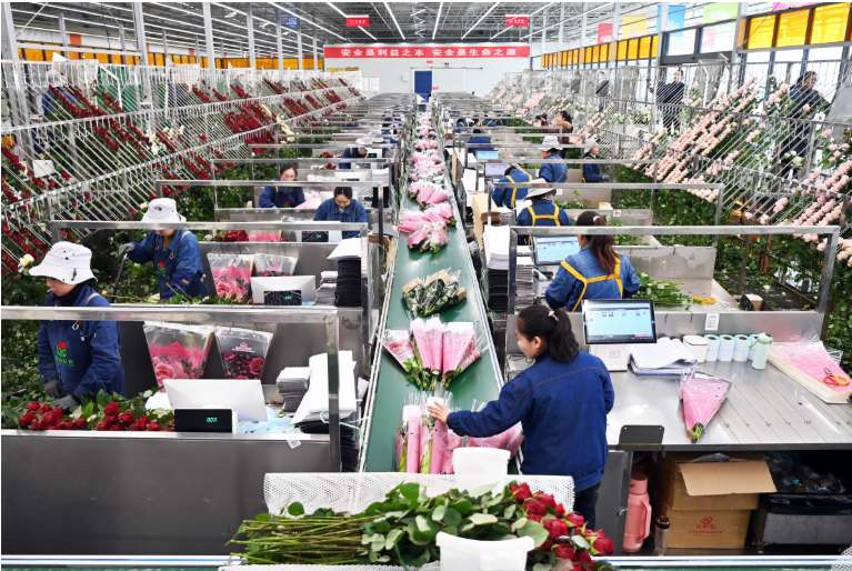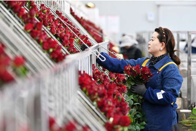 中新社报道,“我们提前一个月就启动备货,近期日产量已突破20万枝,热门品种需提前半个月预订。”鲜花港负责人马林4日介绍说,这座被誉为“玫瑰超级工厂”的鲜花基地,凭借得天独厚的自然条件与先进的科学技术,实现全年无休产花,年产鲜切花达7200万枝。
