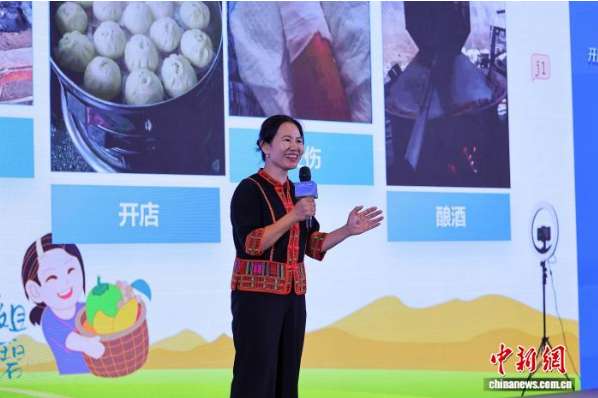 4月12日,在“开局之年看中国·开放自贸港”网络主题传播活动启动仪式上,海南农业网络达人江碧珍分享自己的经历。(图片来源:中新网)
