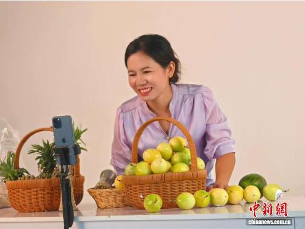 海南农业网络达人江碧珍正在直播中。(图片来源:中新网/受访者供图)