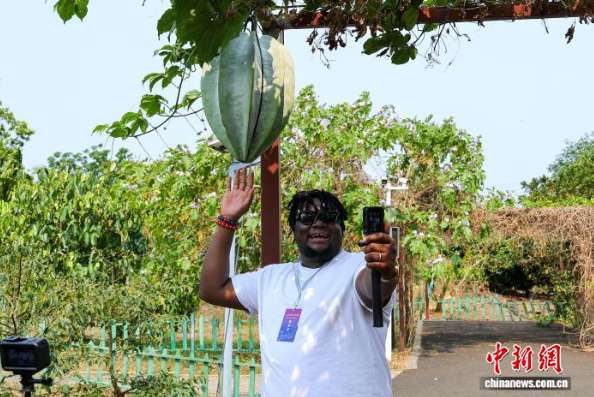 4月15日,尼日利亚籍博主博密走进海南琼海“世界热带水果之窗”进行拍摄,镜头特意对准了非洲杨桃瓜。(图片来源:本文图片均据中新网)