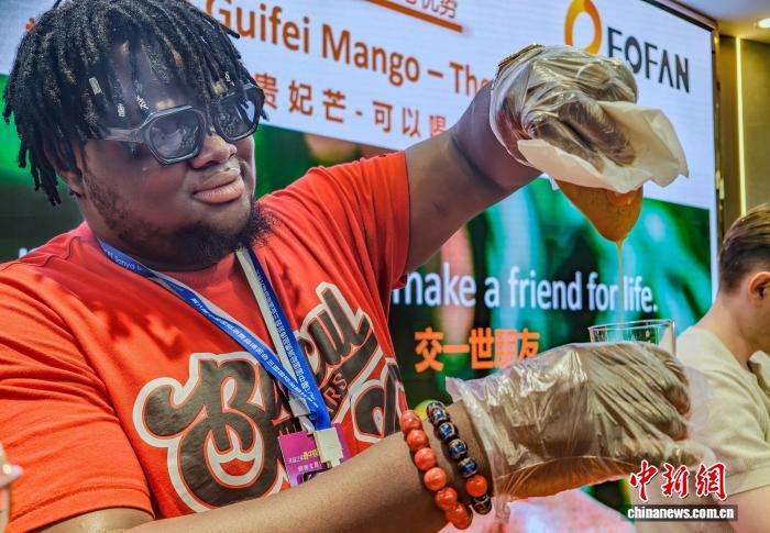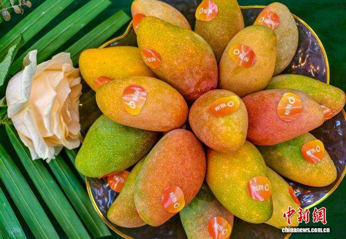 图为三亚“树上熟”贵妃芒香甜馥郁、汁水丰盈,令外国友人赞不绝口。(图片来源:中新网)