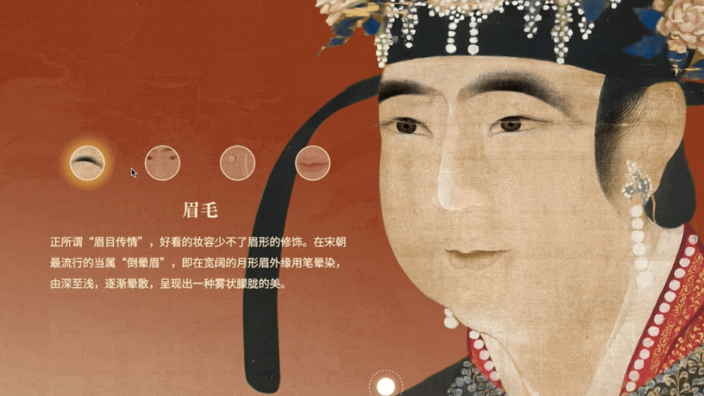 宋朝(960年-1279年)小朋友玩儿些什么?宋代佳人偏好什么妆容?宋时闲事又是怎样极致的浪漫与风雅?为了拉近受众与宋代之间的千年距离,策划团队选择以日常话题切入。《千年调•宋代人物画谱》数字特展推出“伴、俚、伶、伊、仕、仙”六大主题数字展厅,逐一展示宋画珍品中的“儿童、商人、艺人、仕女、文人、仙道”等元素。