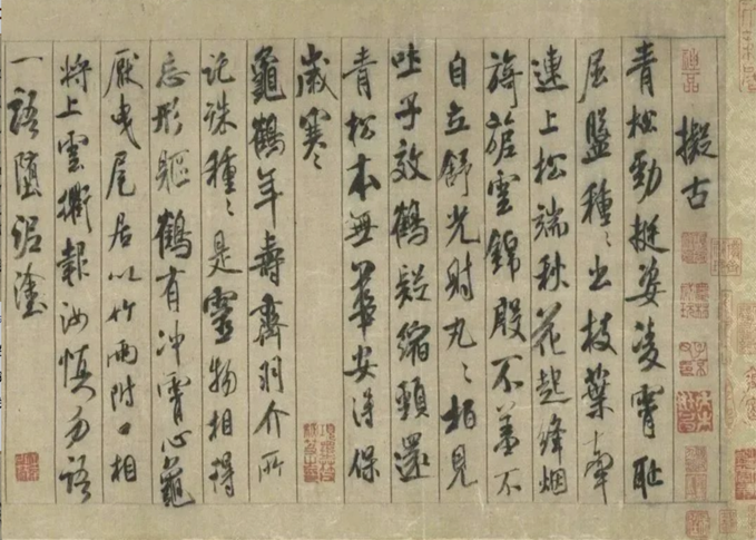 《蜀素帖》是北宋书法家米芾在蜀素(四川织造的白色生绢)上,写下自己所作的八首诗。笔法跳荡精致,结体变化多端,笔势沉着痛快,有“中华第一美帖”之誉,是米芾行书代表作品之一。整幅作品布局简洁,构图精巧,米芾的笔墨运用娴熟,线条流畅自如,仿佛置身于大自然之中。