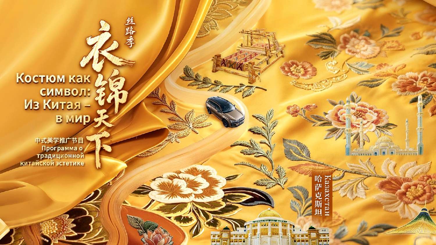 在中国-中亚人文交流活动现场播放了中式美学推广节目《衣锦天下·丝路季》(宣传片),带领观众领略从中国到哈萨克斯坦丝路沿线的壮丽风光:在新疆吐鲁番,赭红的火云谷岩壁与交河故城残垣掠过眼前;在新疆乌鲁木齐,国际大巴扎的西域风情热烈绽放;在新疆伊宁,彩色木门快速闪过;在新疆昭苏,成群的牛羊悠然漫步于草原;在哈萨克斯坦阿拉木图,艺术感十足的地铁壁画引人驻足!