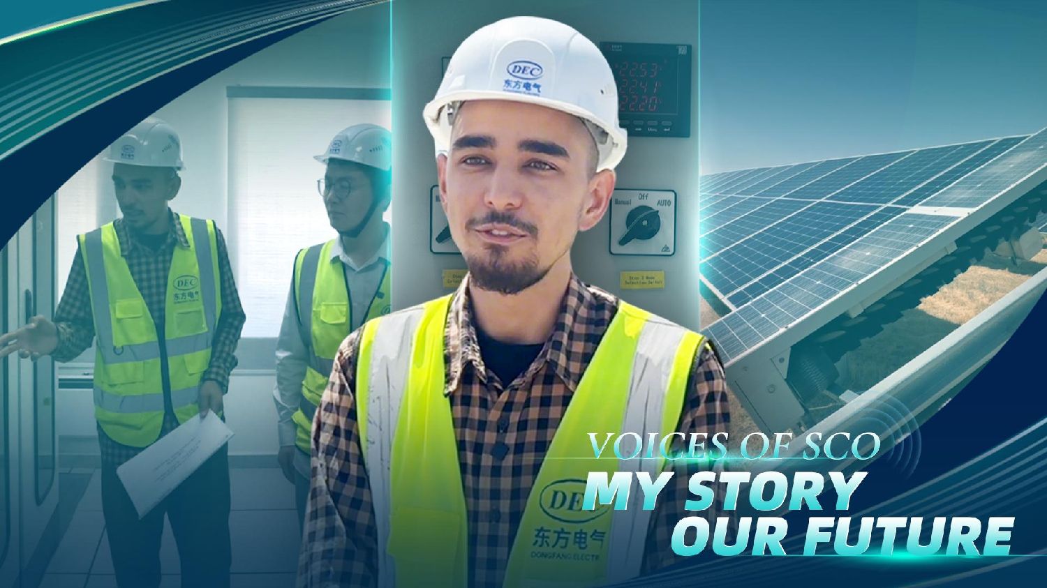 乌兹别克斯坦光伏电站员工舍尔佐德·穆哈马季耶夫ШерзодМухаммадиев生动讲述与中国清洁机器人“共事”的场景,彰显绿色项目为当地就业与可持续发展注入活力。