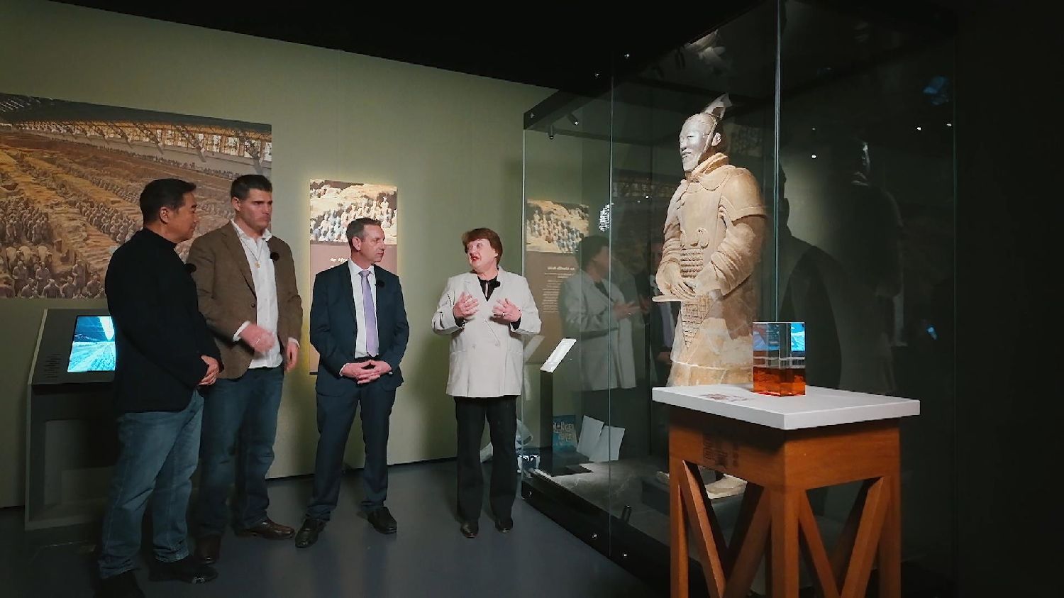 图为节目走进在西澳州举办的“兵马俑——陕西秦汉文明”展。