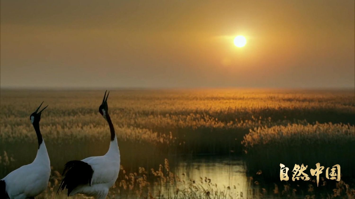 图为芦苇湿地中的丹顶鹤。