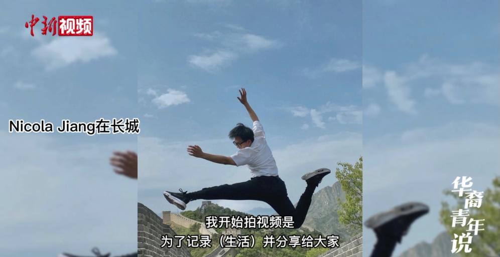 Nicola Jiang在北京游长城。(图片来源:中新视频)