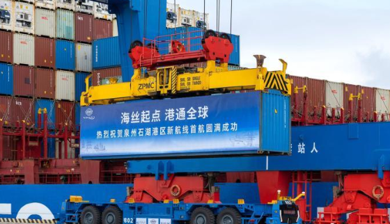 作为中国著名侨乡、古代“海上丝绸之路”起点城市,福建泉州“丝路海运”再扩容。随着一声汽笛长鸣,装载着255标箱、总价值750万美元货物的5万吨级中国籍外贸集装箱班轮“新泉州”号,15日从泉州石湖港区5号泊位缓缓驶离。