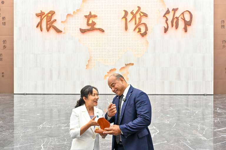 在中国侨都华侨华人博物馆,戴维·阿迪昂一行参观了“根在侨乡”江门华侨华人历史展,了解海外江门侨胞艰辛而辉煌的创业史,领略江门五邑侨乡深厚独特的华侨文化。