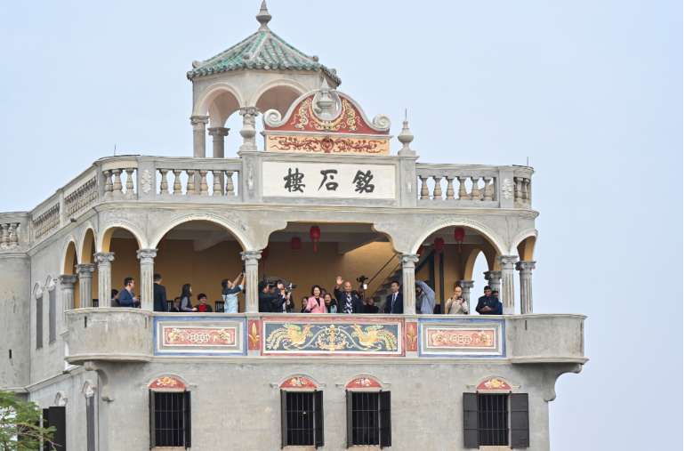 2月11日,广东江门,瑙鲁总统阿迪昂参观开平碉楼。