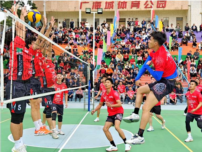 2月17日,广东台山广海镇举行2026年新春“首冠杯”九人排球比赛,吸引不少侨胞和附近村民到场观看。