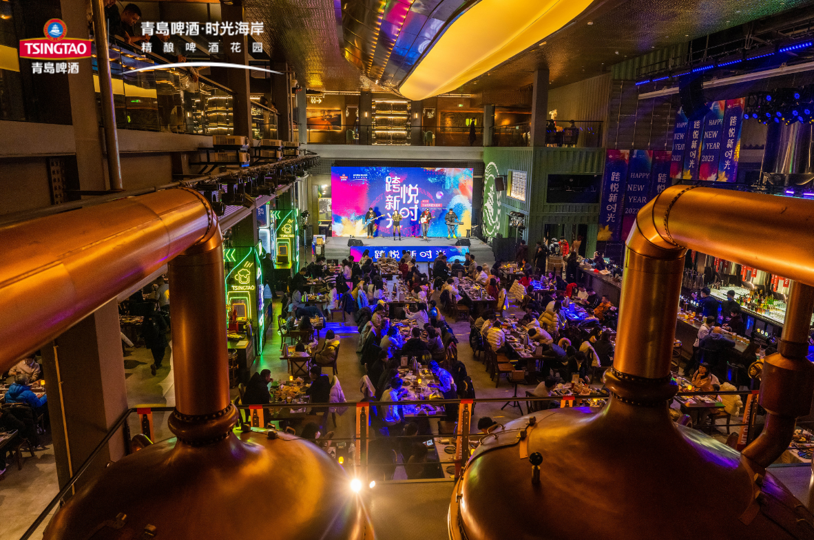 青岛啤酒时光海岸•精酿啤酒花园内人声鼎沸。