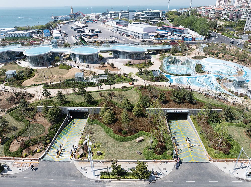 青岛小麦岛打造“地下停车+地面公园+空中云桥”。刘栋 摄