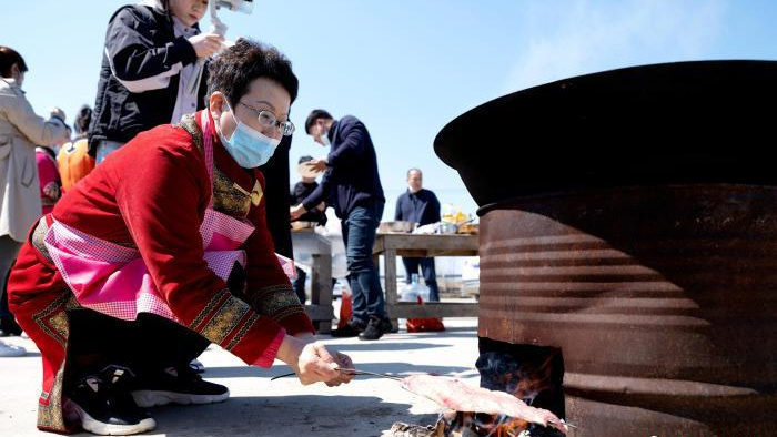 赫哲族人在制作特色美食。(图片来源:中新网)