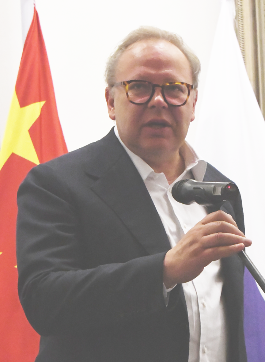 俄罗斯列宾美术学院院长西蒙·米哈伊洛夫斯基在致辞时,回顾了2015年11月,韩玉臣在该校举办展览时的难忘感人场景,然后动情地说:“我与韩玉臣接触较多,了解甚深,他是个有思想、有品味、有追求的艺术家,虽然经历过许多磨难,又为企业生存操劳,但为了实现自己的理想,他什么困难都能克服。此次展览我又看到了他有不少颇具创意的作品,表明他在艺术上又有了新的突破,明天我们将邀请他到列宾美术学院进行学术交流。我相信韩玉臣地展览必将在俄罗斯引起更大的反响。”