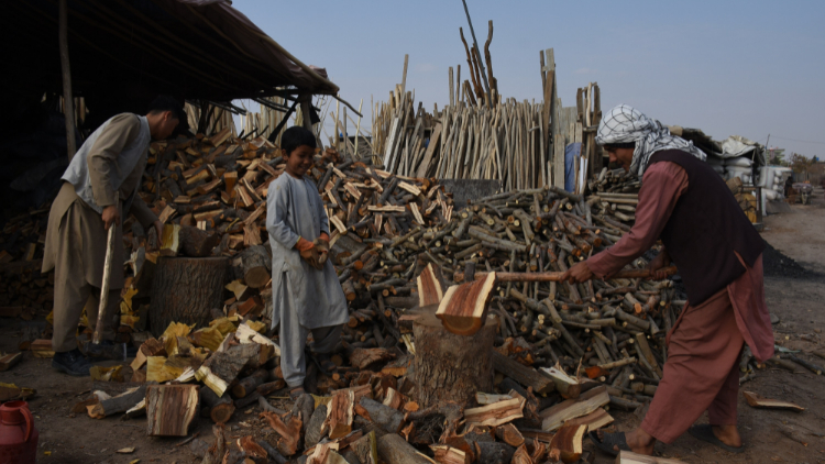 图为11月15日,人们在阿富汗马扎里沙里夫的木柴市场工作。(图片来源:新华社)