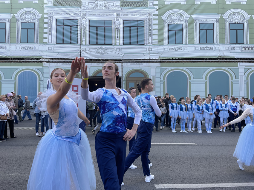 图为艺术团体在莫斯科市中心特维尔大街举行的街头表演。(图片来源:香港中通社)