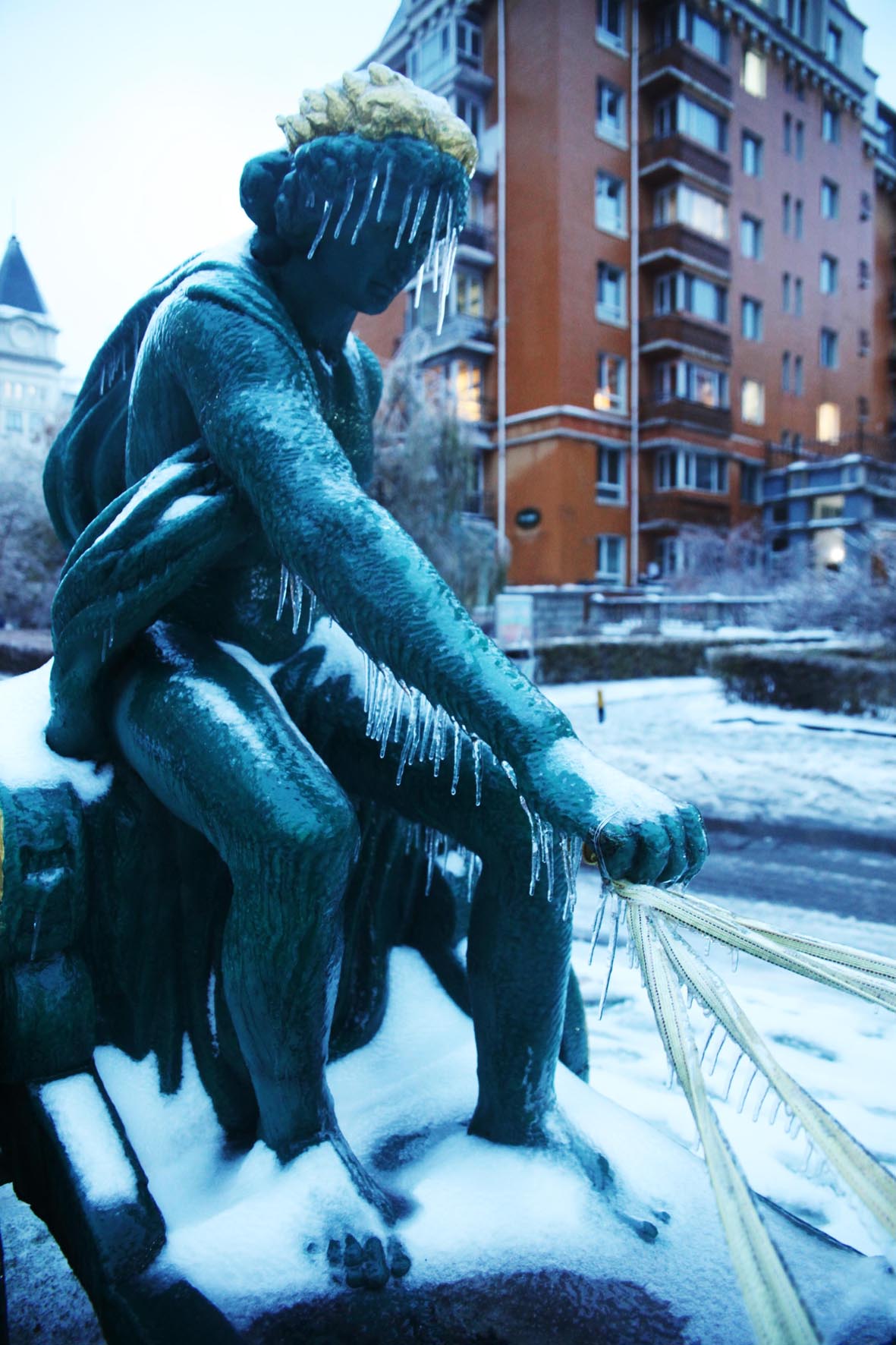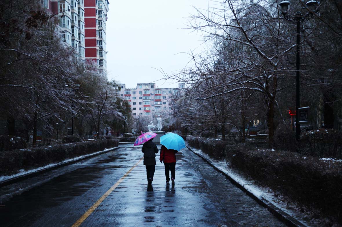 11月8日,哈尔滨出现冰雨现象,全市大部地区道路结冰,能见度低,影响市民出行。(图片来源:中新社)