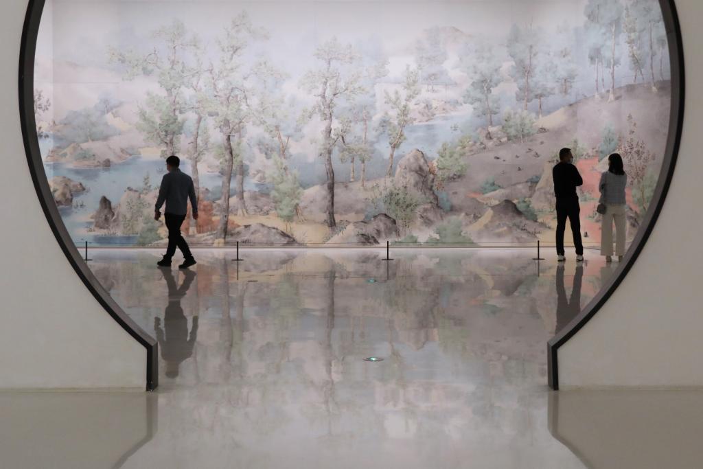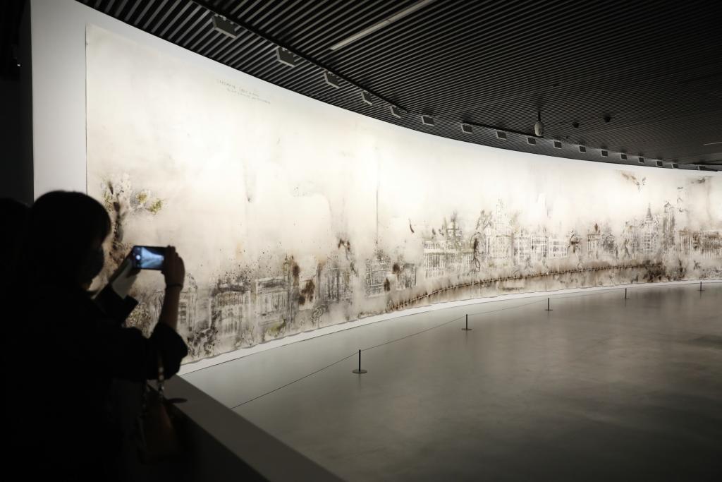 11月19日,“现代的脉动:宝龙艺术大展”在上海宝龙美术馆开幕。展陈来自不同国家的150余件艺术作品,呈现了一个世纪以来东西方文化交融的艺术盛宴。图为蔡国强创作的《没有我们的外滩》宛如一幅长卷徐徐展开,让观众立身于中国近现代的视觉坐标。(图片来源:中新网)
