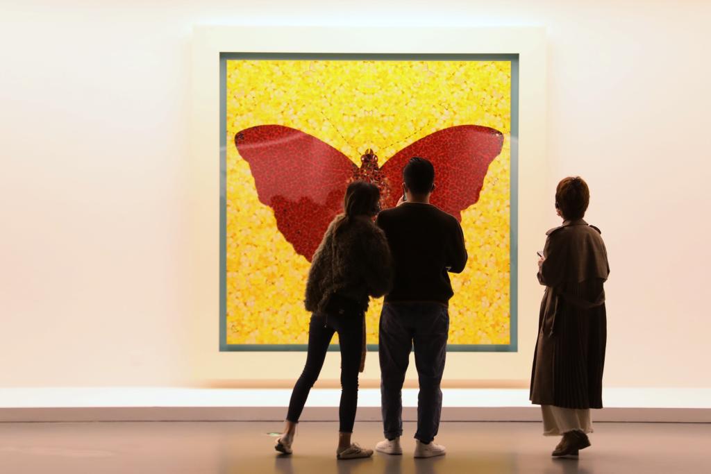 观众在作品《血迹蝴蝶》前驻足。(图片来源:中新网)