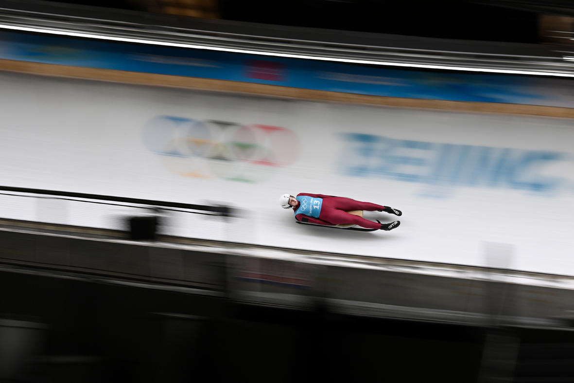 2月3日,北京延庆赛区国家雪车雪橇中心进行2022北京冬奥会女子单人雪橇项目第一次官方训练。图为俄罗斯奥委会选手维克托里娅·杰姆琴科在训练中。 (图片来源:中新社)