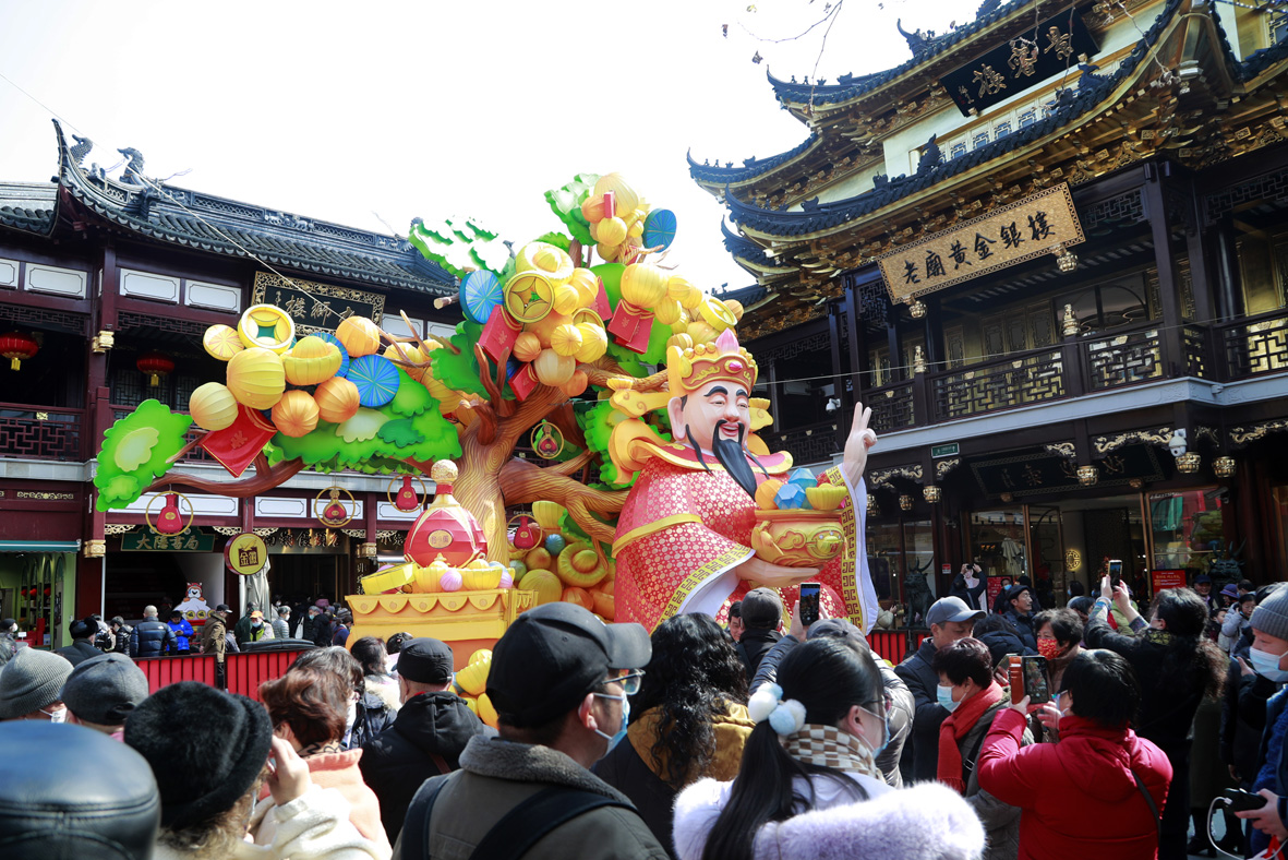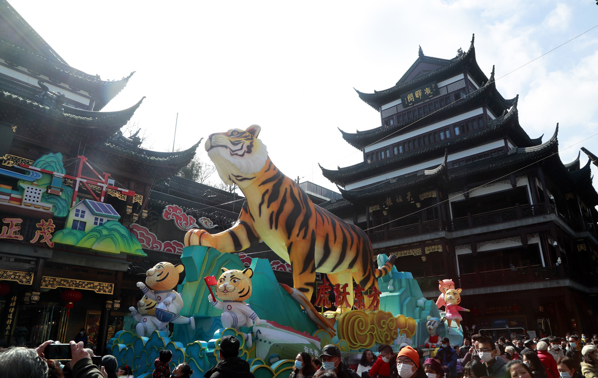 2月10日,随着元宵节的临近,上海豫园民俗虎年灯会吸引民众前来逛灯会感受传统民俗。(图片来源:中新社)