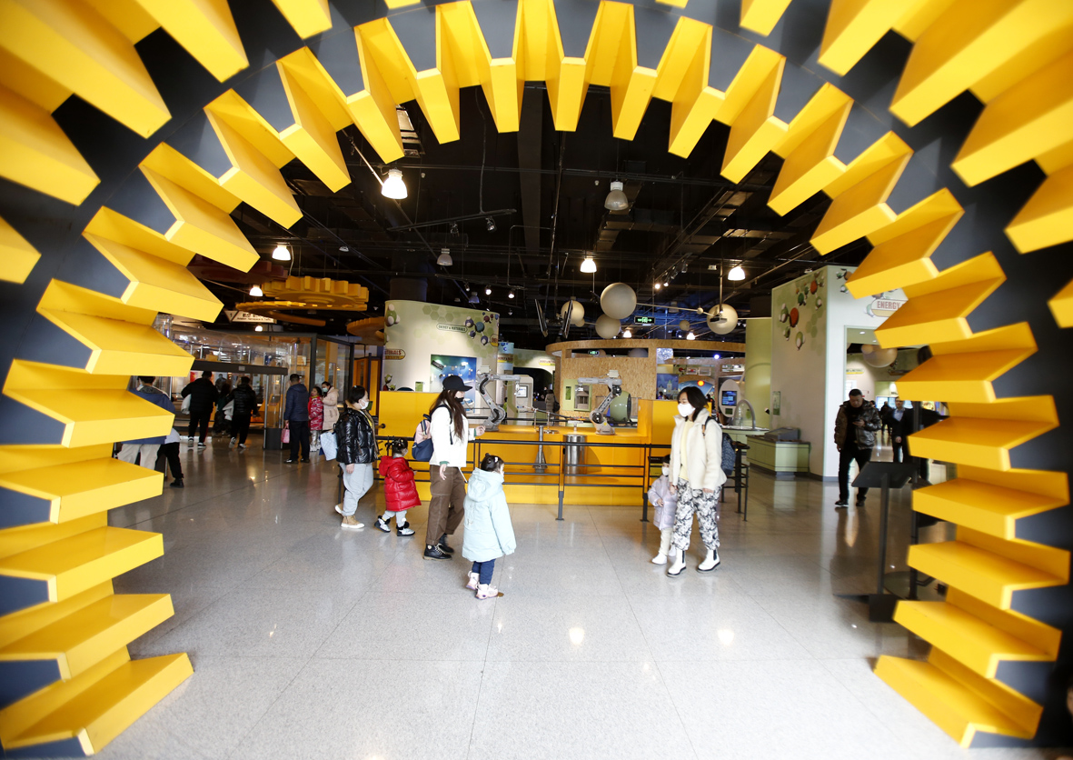 2月26日,黑龙江哈尔滨,家长带孩子在技术馆参观。(图片来源:中新社)