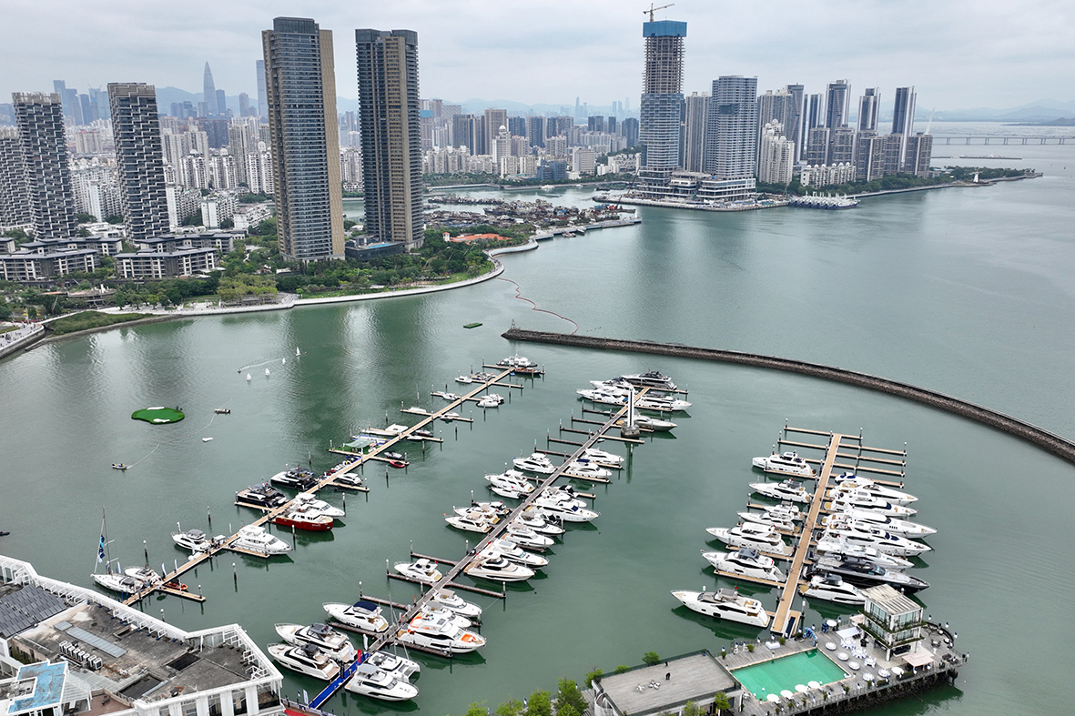 5月2日,第十二届深圳湾国际游艇展在广东深圳湾游艇会开幕。图为俯瞰深圳湾国际游艇展。(无人机照片)(图片来源:中新社)