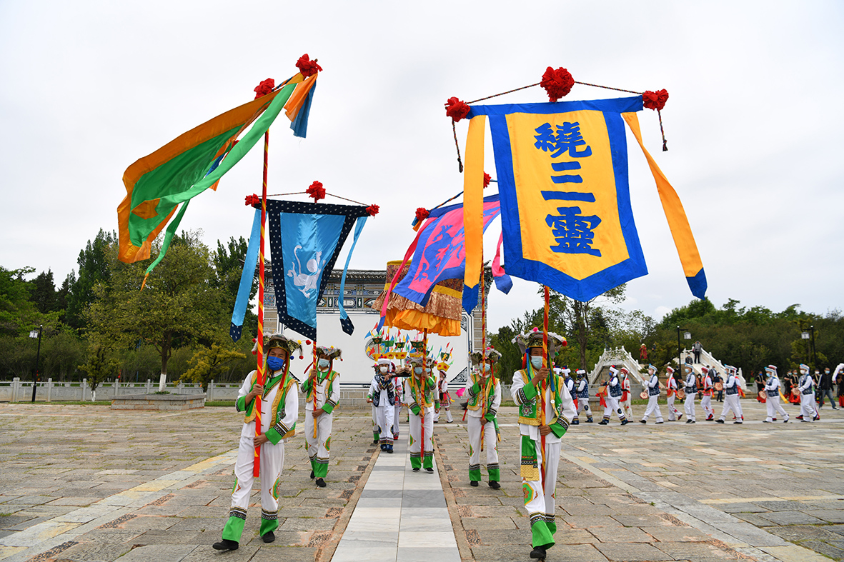 5月2日,云南民族村举行白族“绕三灵”民俗活动。(图片来源:中新社)