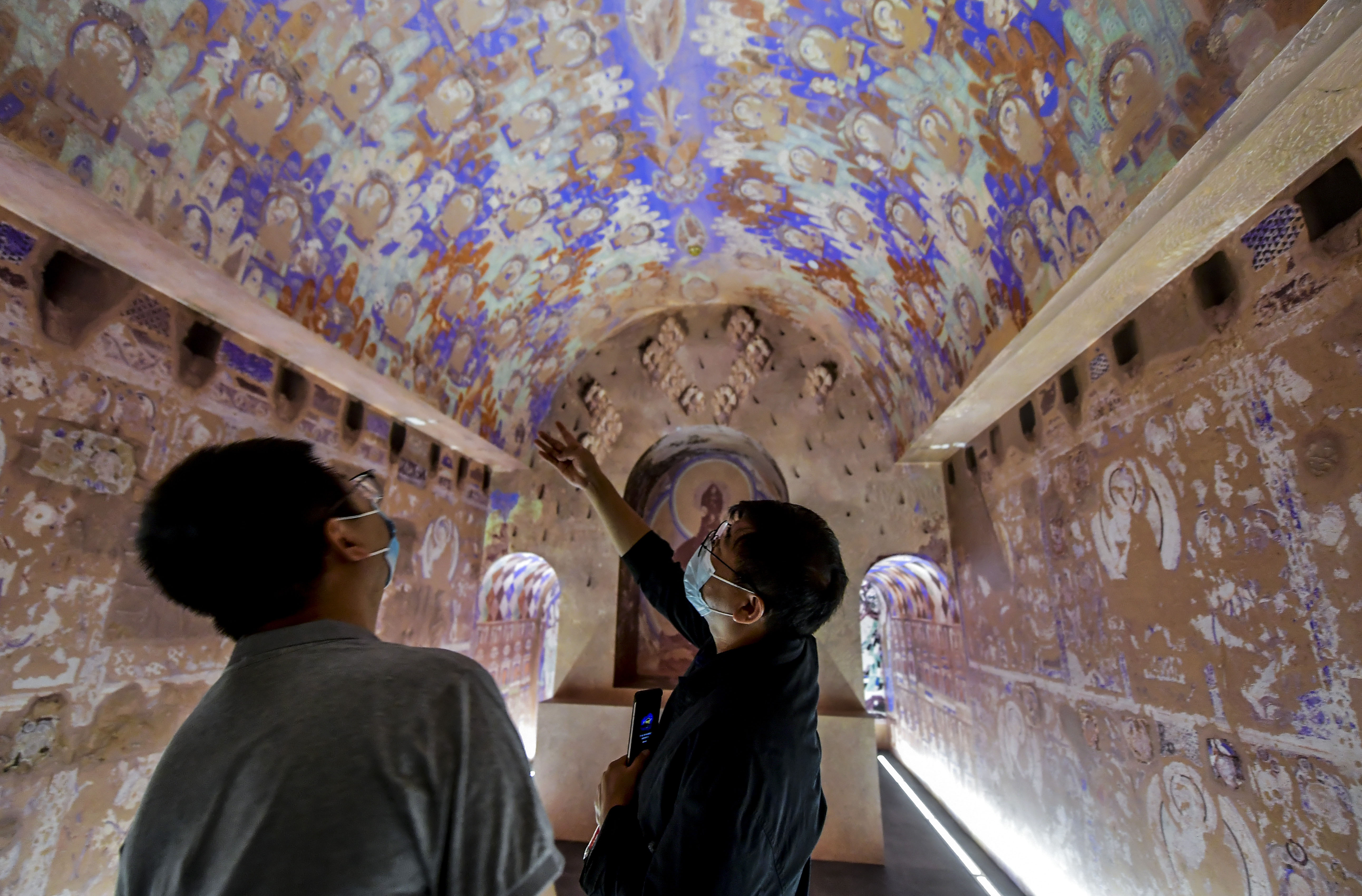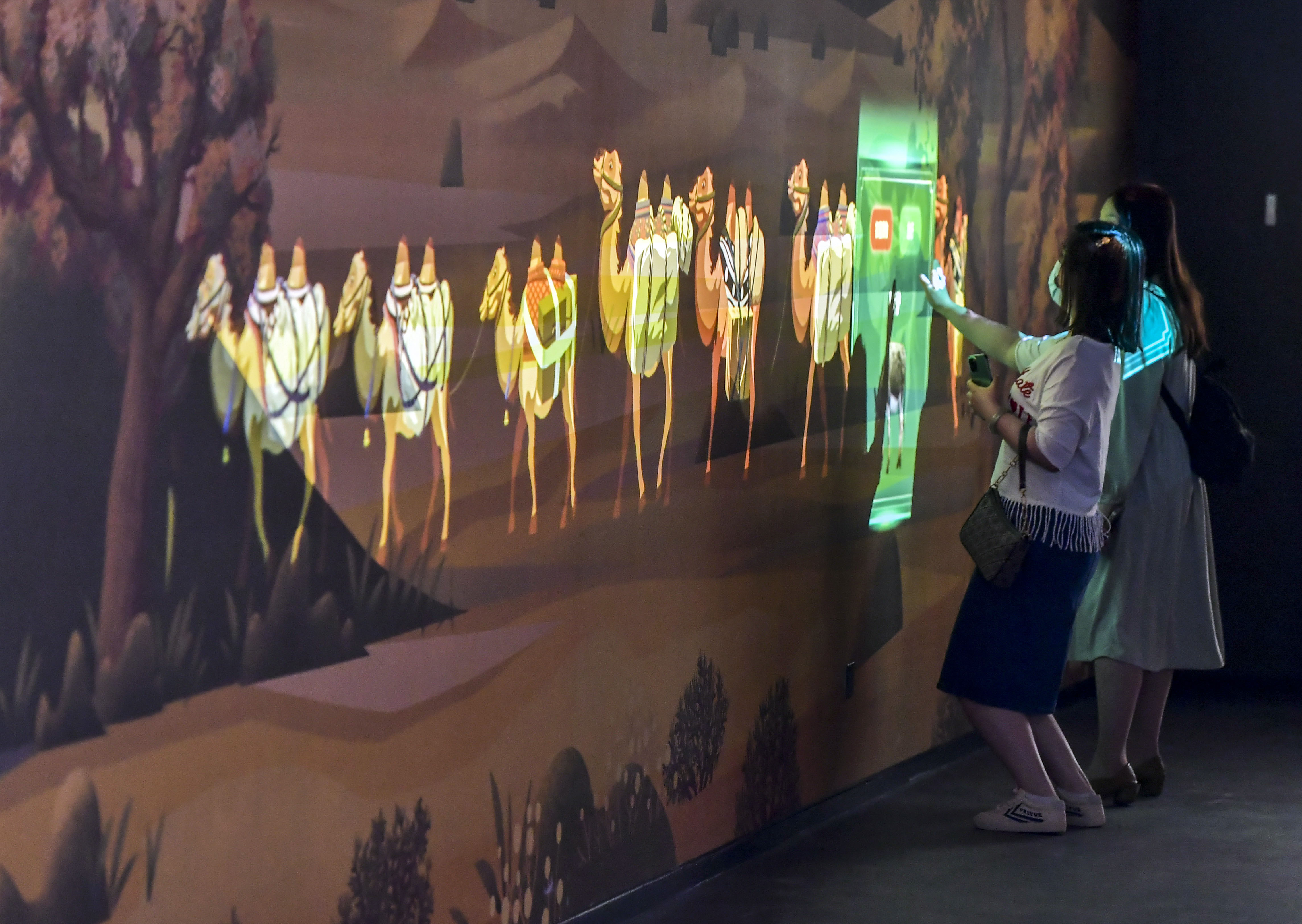 5月18日,位于乌鲁木齐市的新疆博物馆二期场馆正式向公众免费开放,并推出全新大展“中央王朝统辖治理新疆主题系列展览”——《新疆历史文物陈列》。展览以中国通史新疆地方史为脉络,集中展示先秦至清代的各个时期精品文物1570件/组,其中有近500件新出土文物首次公开展陈。图为参观市民现场体验“唐代丝绸之路”体感互动游戏。(图片来源:中新社)